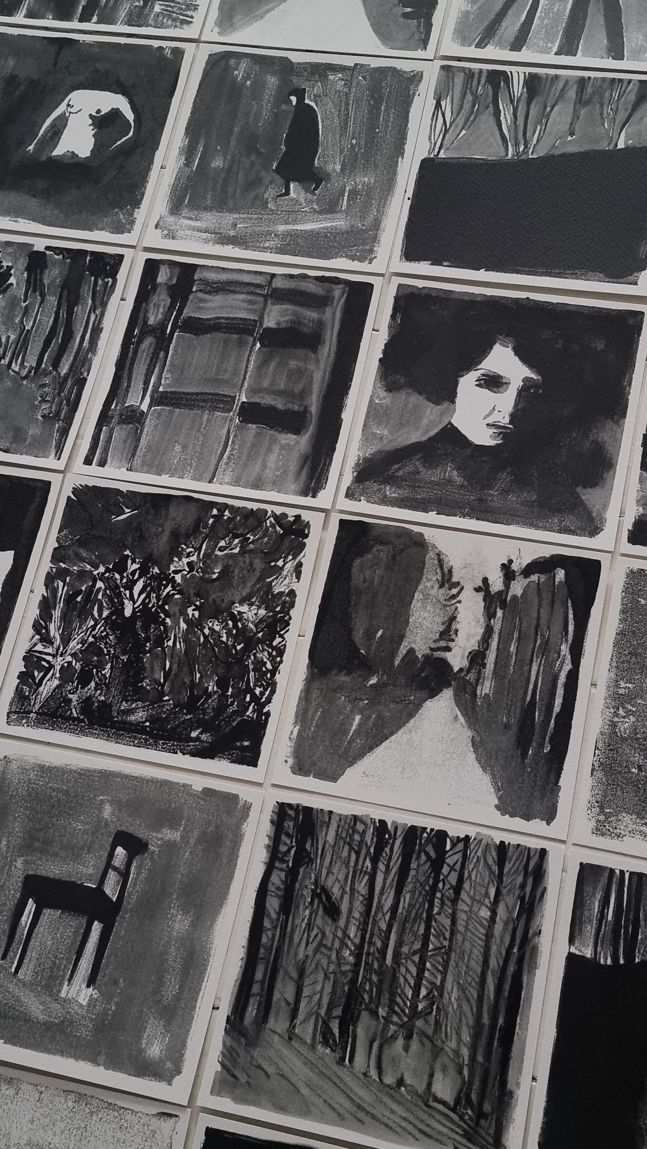 32 Monotypes 16 x 16 cm made late at night, full of fear