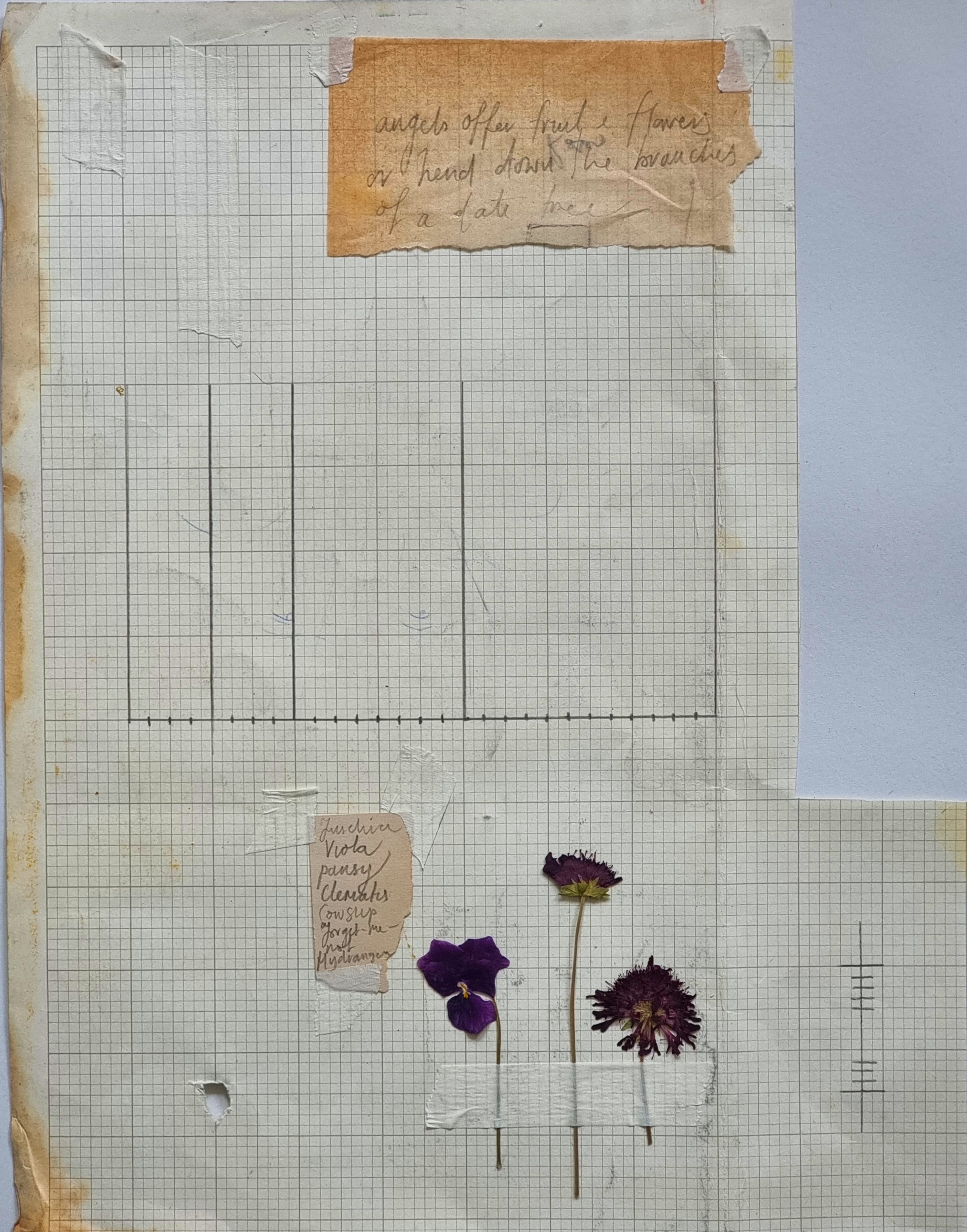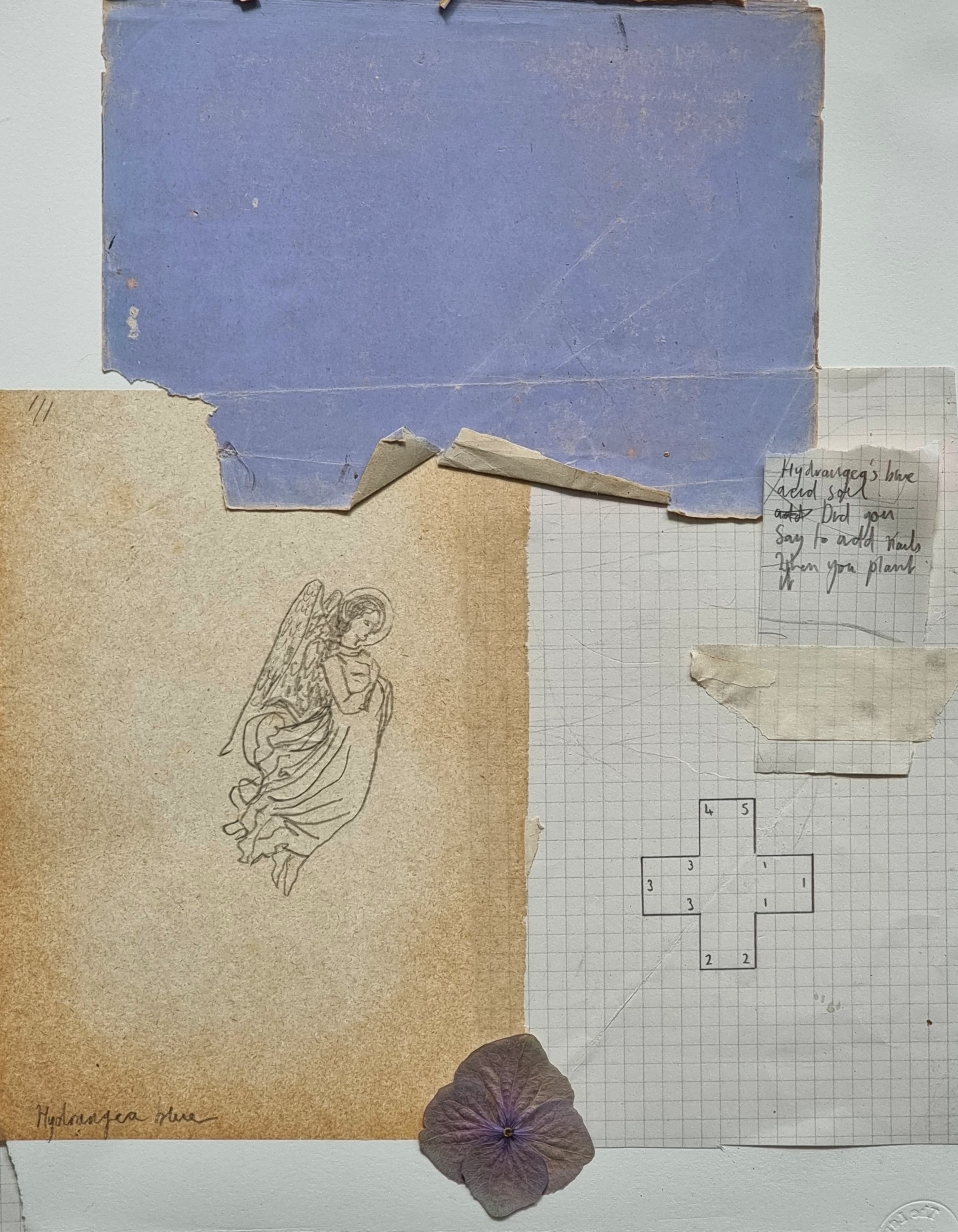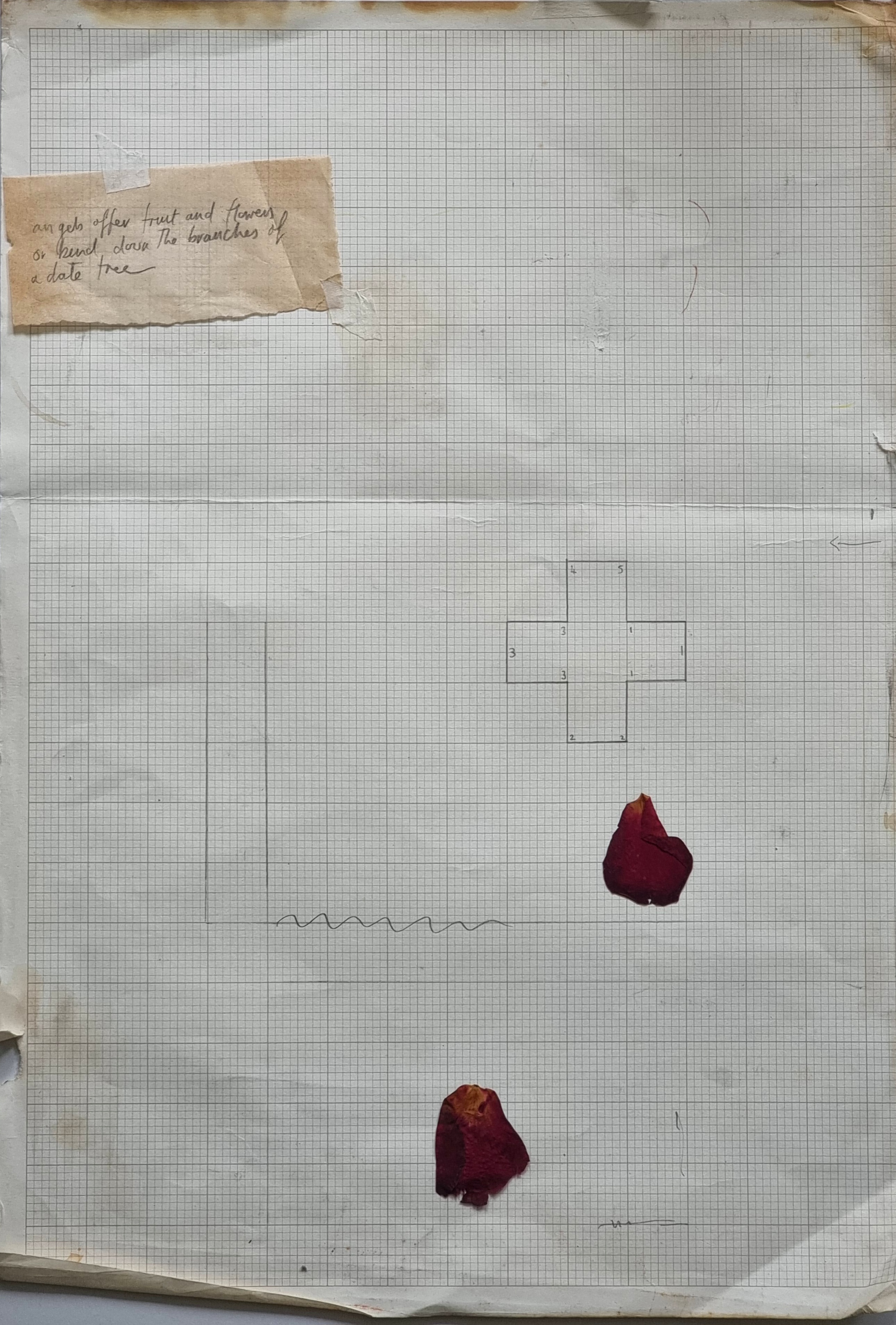 This series of drawings are a collection of unfinished conversation. One between myself and ‘Nang’ (my grandma). A series of ideas and plans for a piece of land in her garden, made whilst we sat together one afternoon last year. This is one in a series of over 80. Nang passed away in June 2023 these drawings have become a shrine, a kind of pilgrimage to our last conversations about the garden. The paper holds her dreams and is now preserved in a timeless state. A garden that will remain suspended in a perfect ideal of what might have been. These drawings have become the embodiment of my love for her. The gardener digs in another time … without past or future, beginning or end.